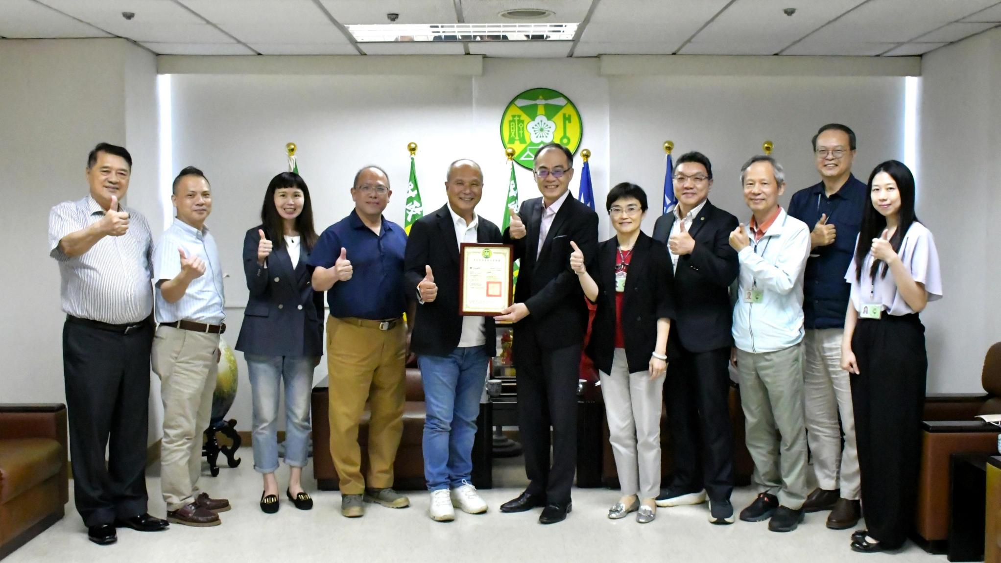 共創智能股份有限公司經過認證取得安全認證優質企業(AEO)資格,該公司執行長葉福海於2025年8月29日率AEO小組成員至台北關領證,由關務長黃漢銘頒發證書並表達恭賀之意。